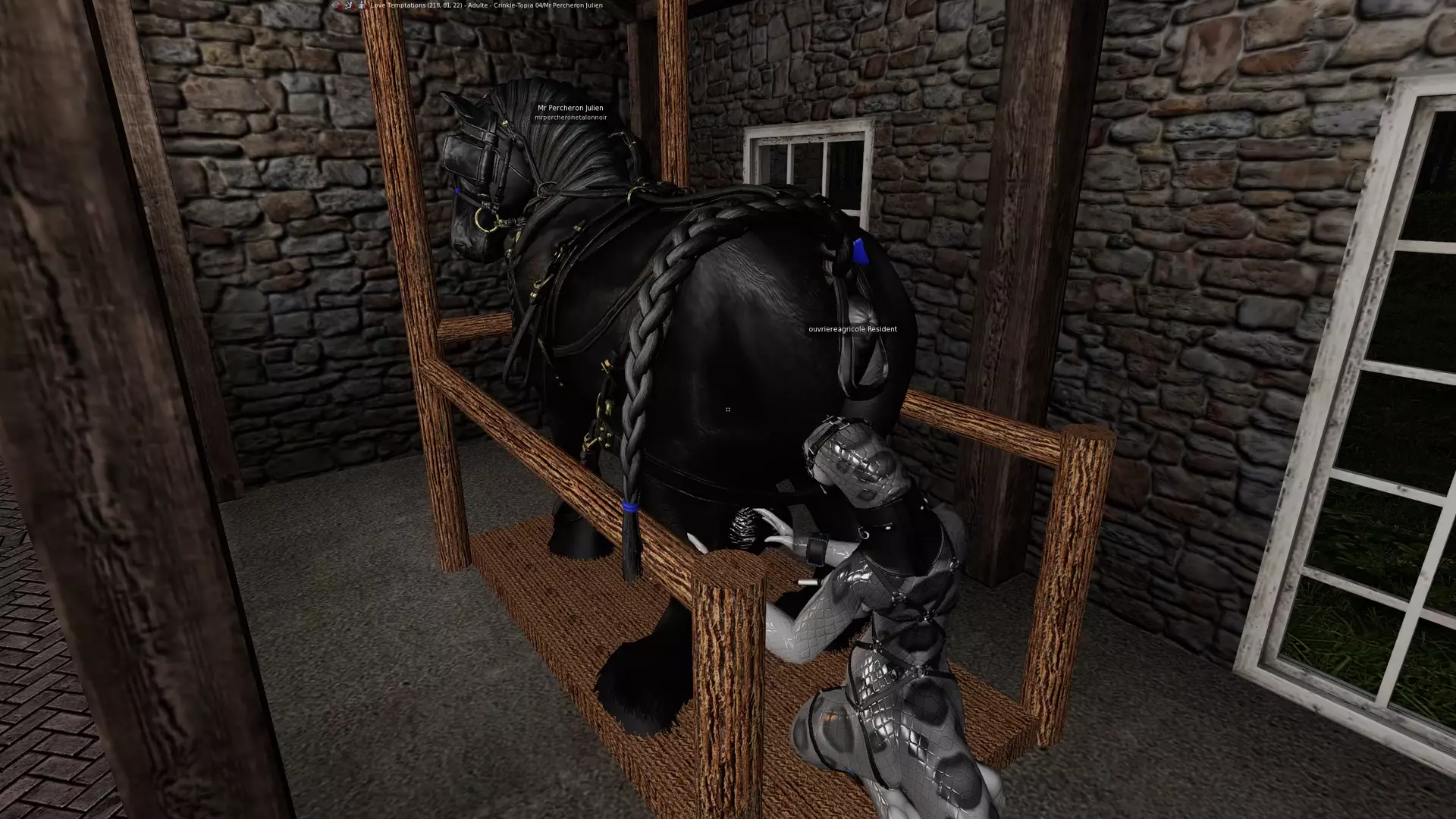 A Percheron Stallion Is Being Tortured. His Testicles Are Being Tortured By A Furry F