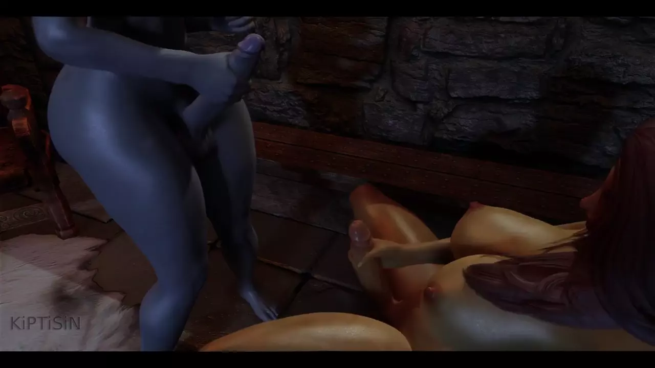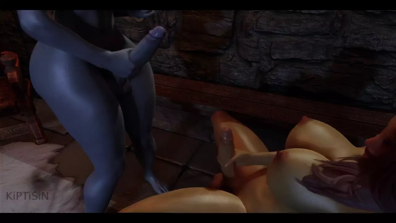 Two Futanari Elfs Masturbate Their Big Cocks