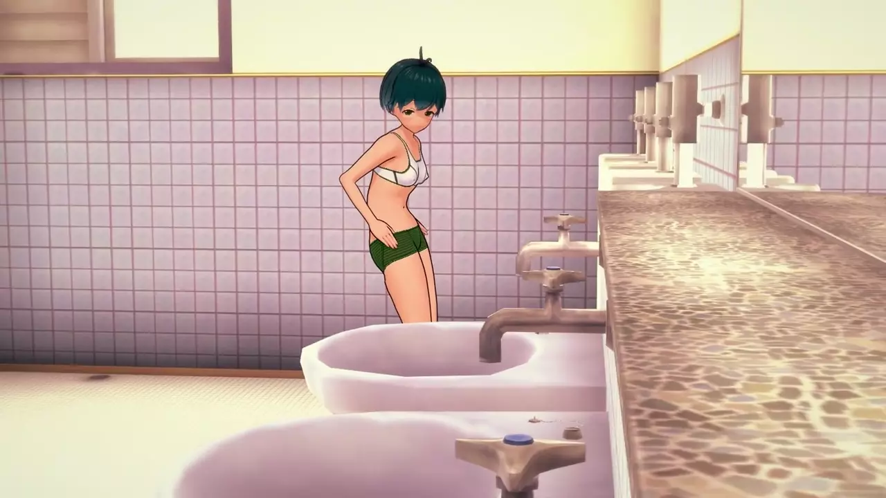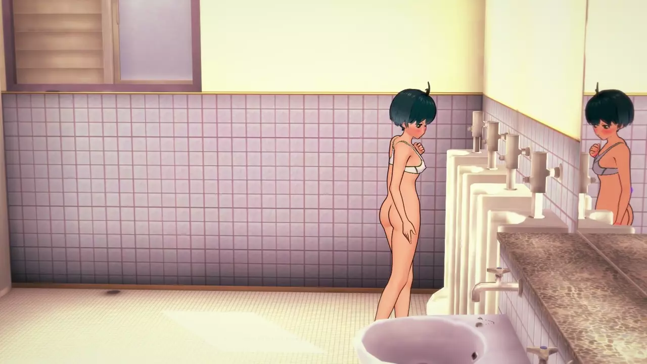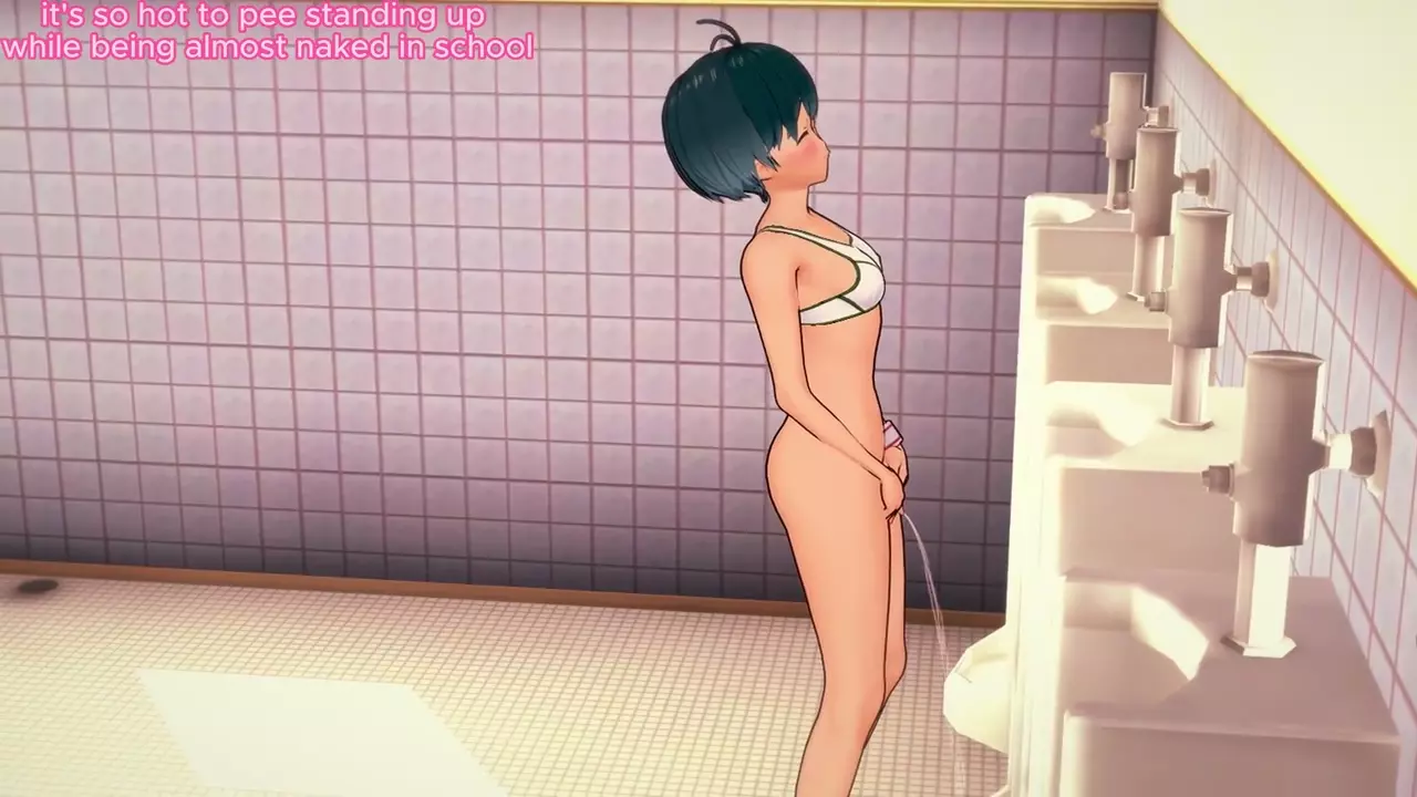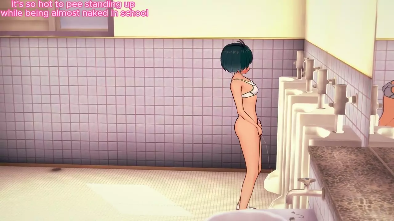 Almost Naked Girl Pissing In Men's Bathroom