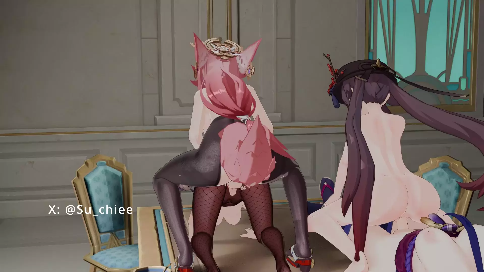 Animation Genshin Hutao X Raiden Shogun, Yae Miko X Mona