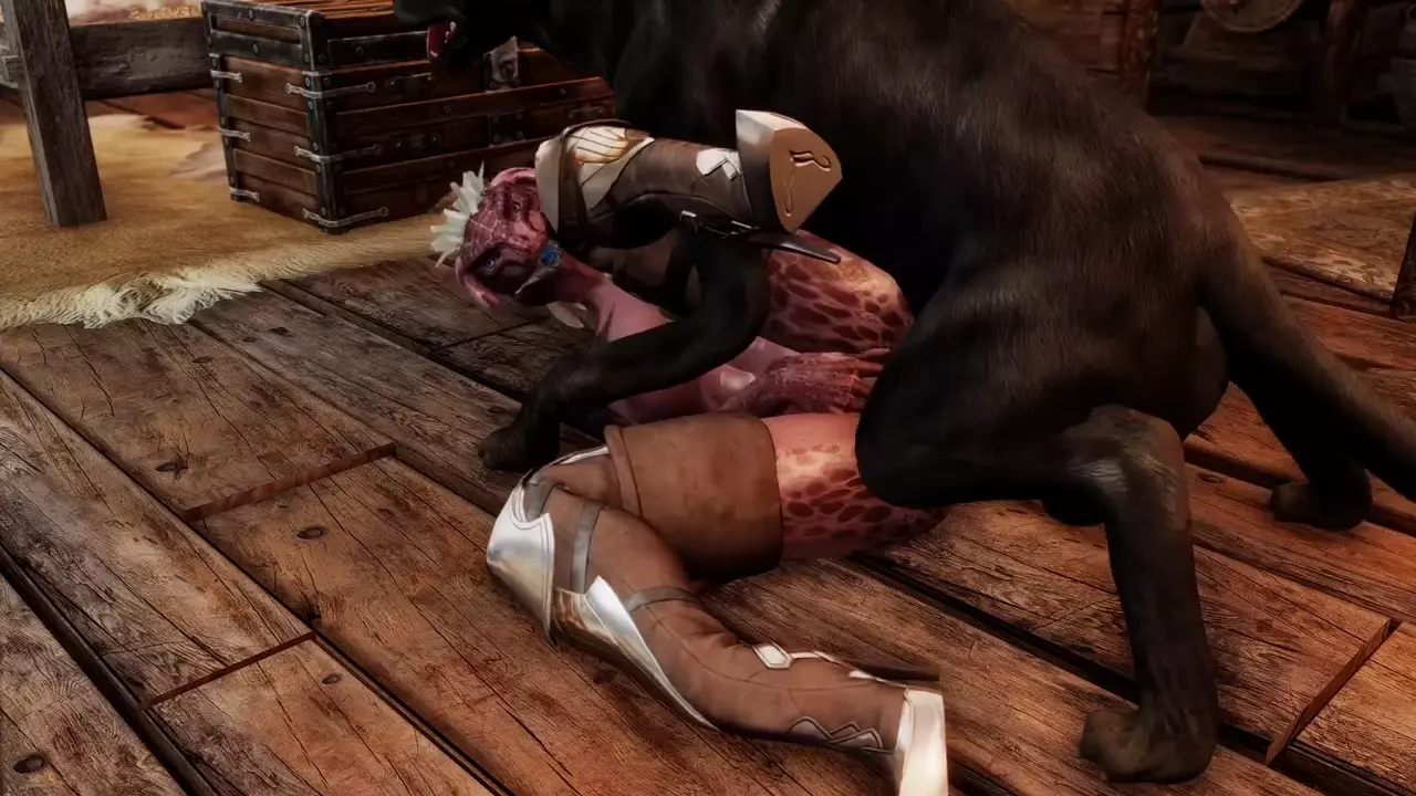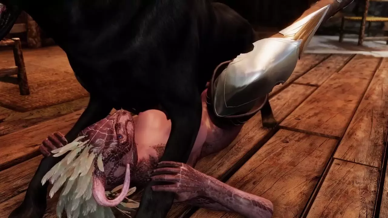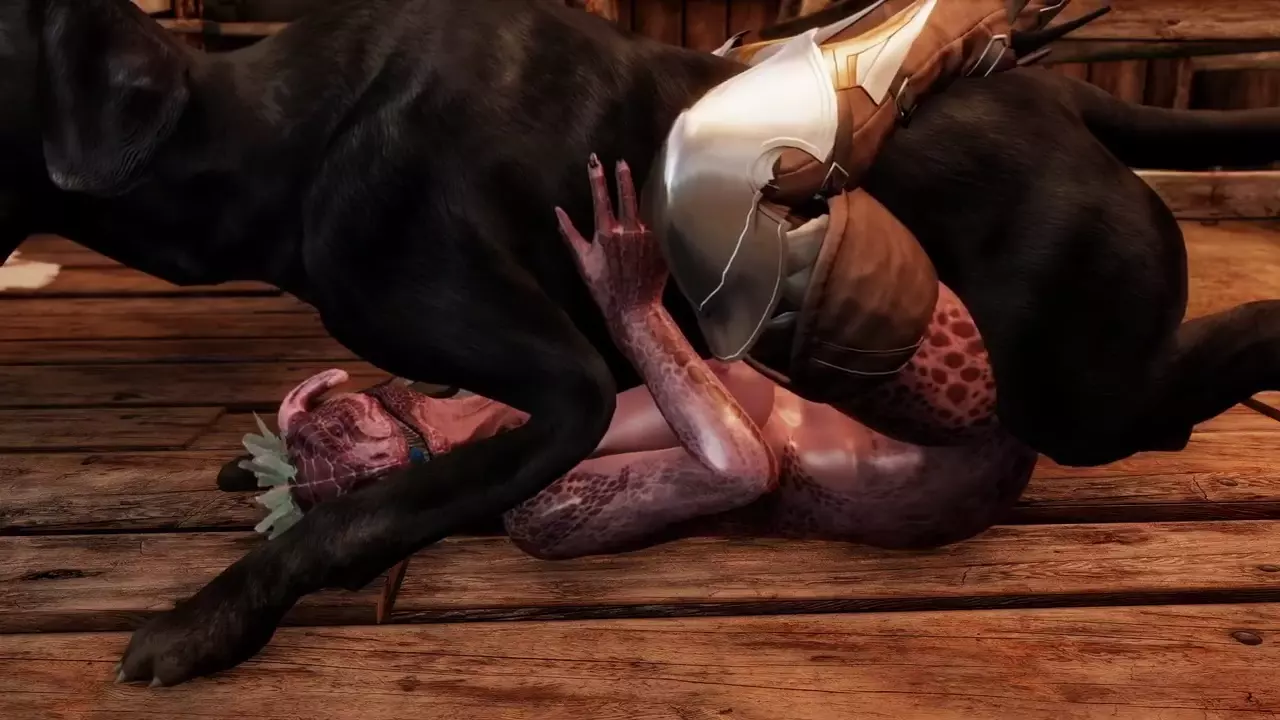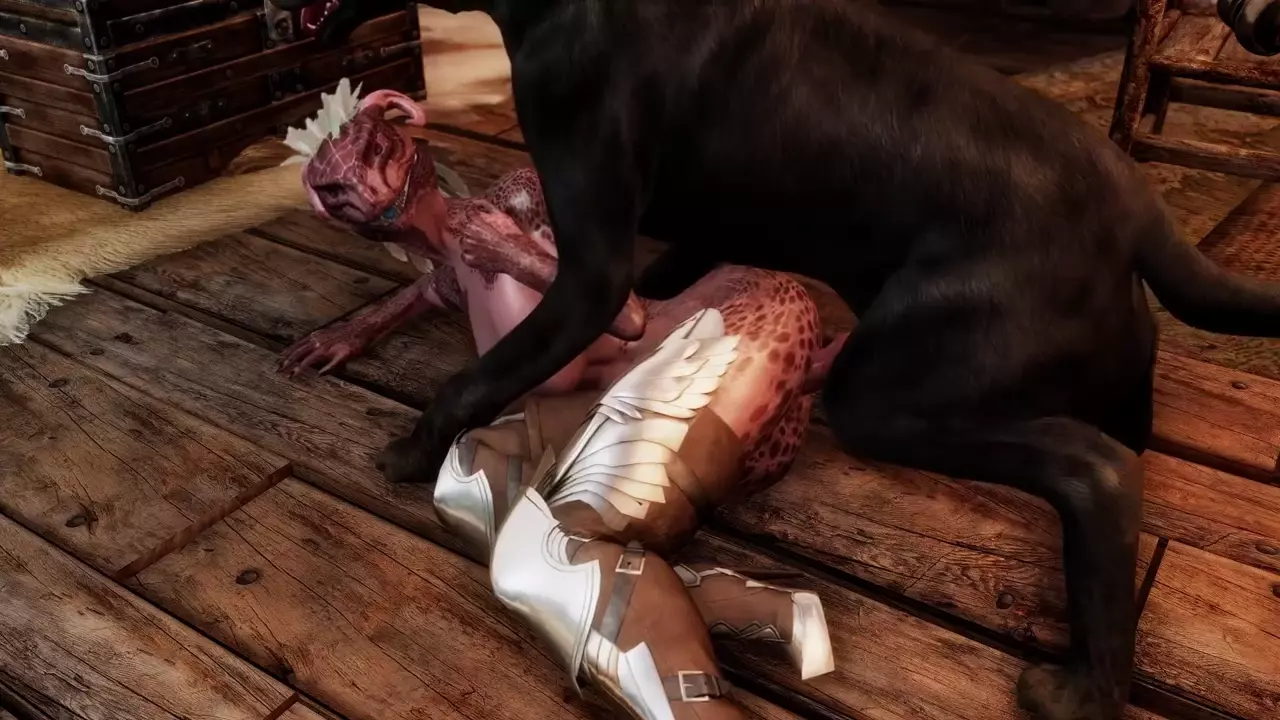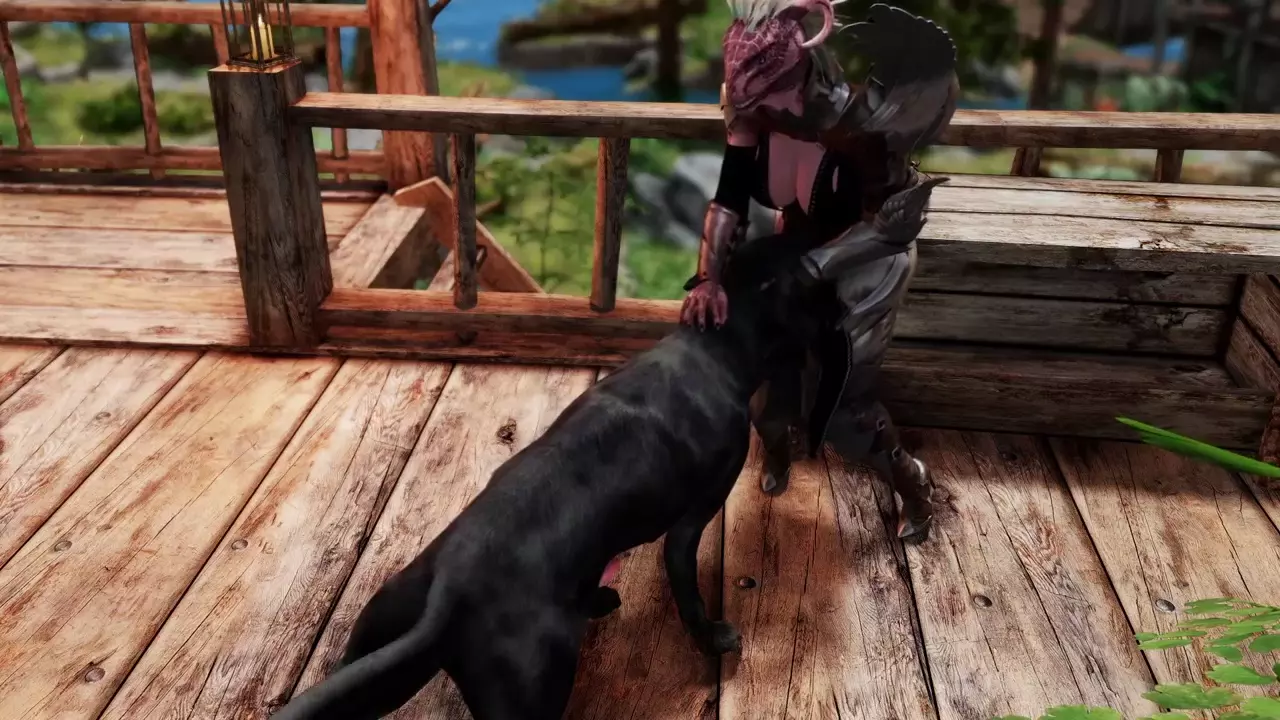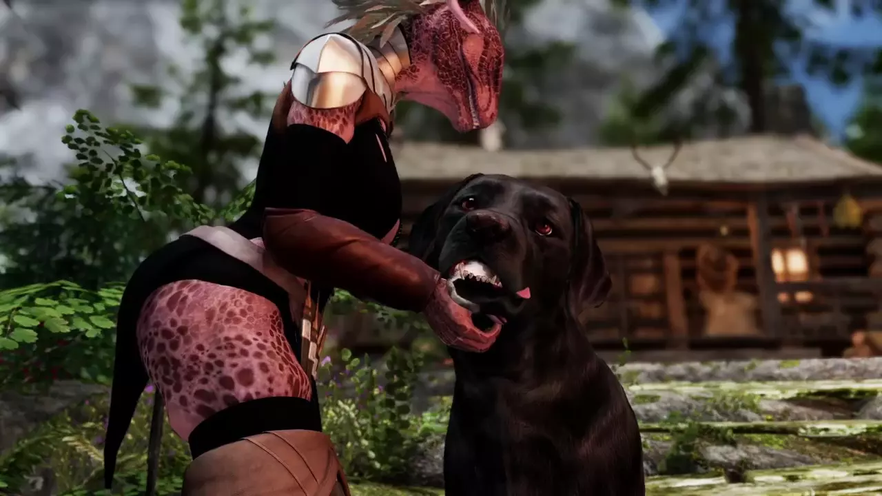 Argonian Hunter Plays With Her Dog [Lizard3469]