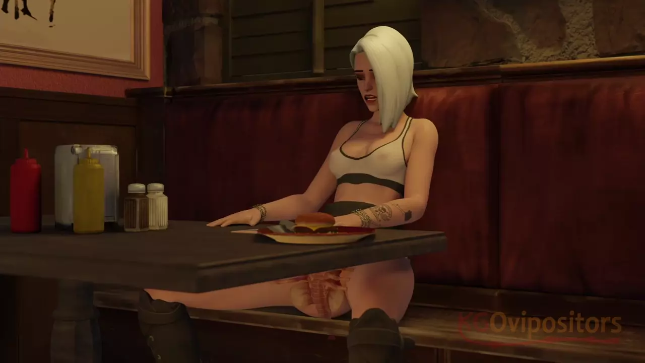 Ashe Pussyhugged In Restaurant