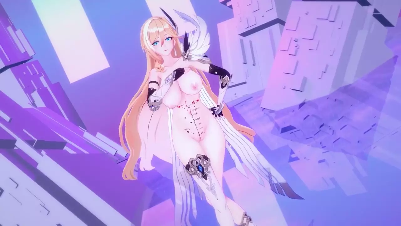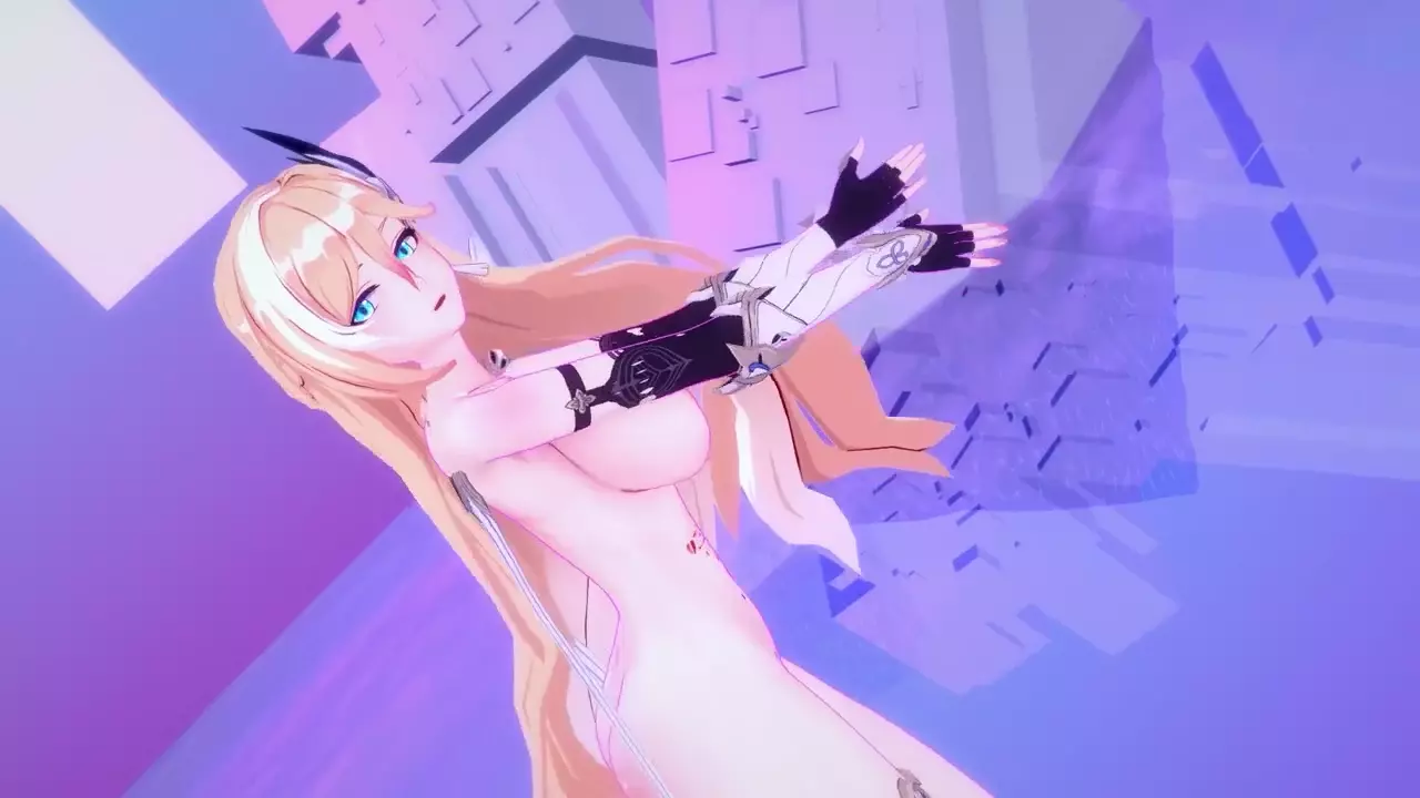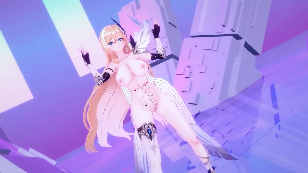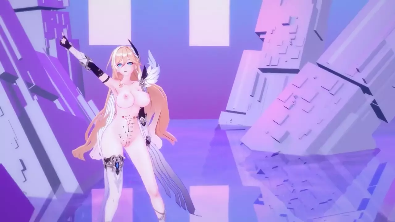 Durandal Honkai Impact 3rd Nude Dancing Hentai Thumbs Up Blonde Girl Big Boobs Mmd 3d