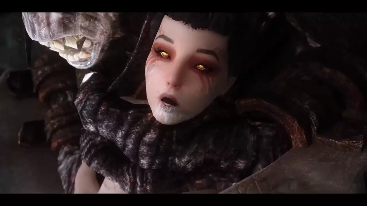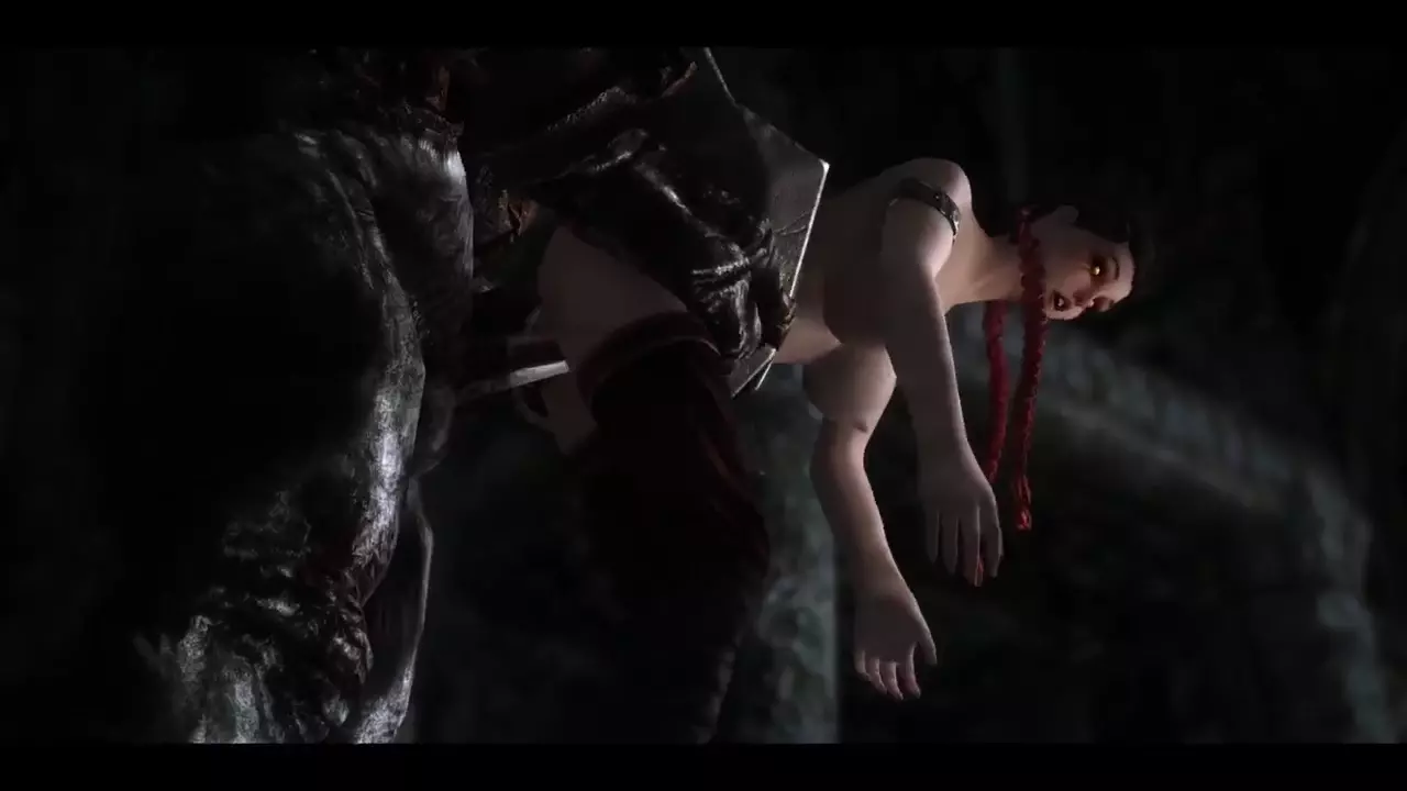 Vampire Gets Neutralized By A Dawnguard Armoured Troll During A Raid On Castle Volkih
